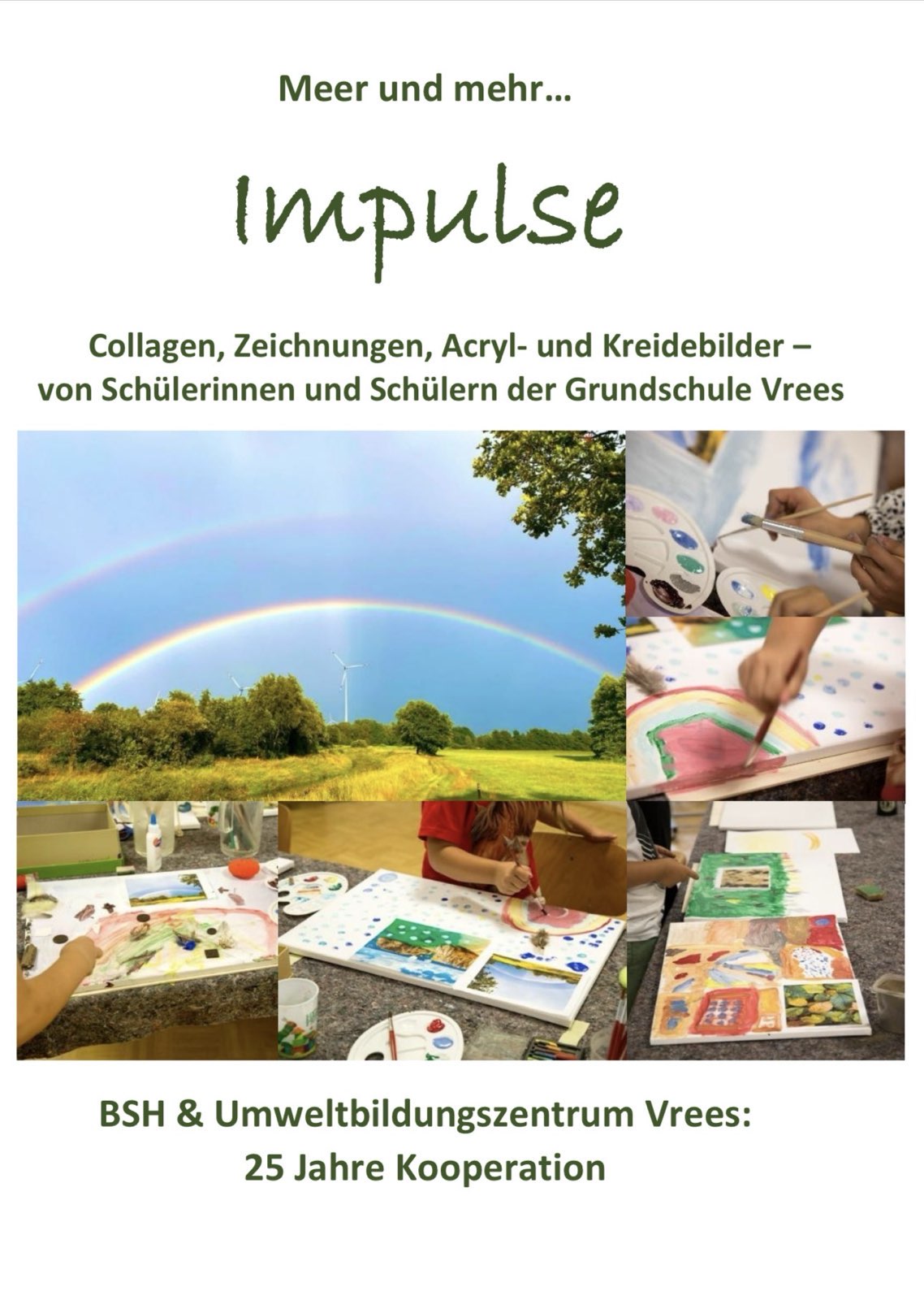 Collagen, Zeichnungen, Acryl- und Kreidebilder – von Schülerinnen und Schülern der Grundschule Vrees.